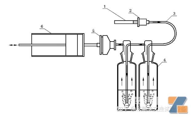 分别移取25.0mL衍生化试剂(F.3.11)于每个捕集阱(F.2.4)中,将两个捕集阱(F.2.4)串接于电子