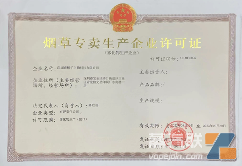 10月16日消息,近日深圳市椰子生物科技有限公司在烟草局的监管检查下,顺利办结烟草生产专卖企业的所有审批流程,正式取得烟草专卖生产企业许可证(雾化物生产企业)。