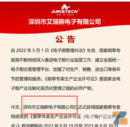 提到目前公司已取得国家烟草专卖局核发的《烟草专卖生产企业许可证》(电子烟代加工企业),相关电子烟产品已经实现正式生产。电子烟业务作为公司重点布局发展方向,将在许可证的许可范围内,依托积累的资源优势、技术优势、团队优势等综合优势,为客户提供电子烟烟具、烟弹等产品的生产、代加工服务。为此,公司已配置了专业的电子烟研发、生产、品牌及销售团队,已拥有10余个电子烟商标,已推出近20款自主研发的电子烟机型,同时有12款电子烟产品已经完成出口备案。