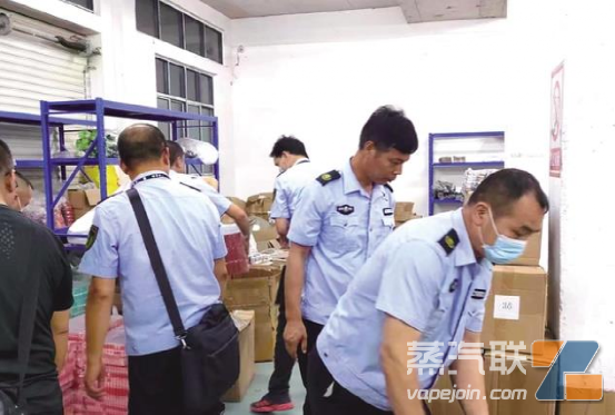 经过前期大量取证工作,专班判断收网时机成熟。6月6日晚,公安、烟草、市场监管等部门联合出动40余人,对位于天门市小板镇的制假工厂和仓库实施检查,现场查获伪劣成品电子烟2万余支,烟油400余公斤,烟管、电池、吸油棉、包装盒、虚假防伪码等配件60余万件,涉案电脑3台。