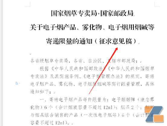 10月16日消息,烟草局电子烟等寄递限量征求已经发布,截止到10月底为征求意见期。