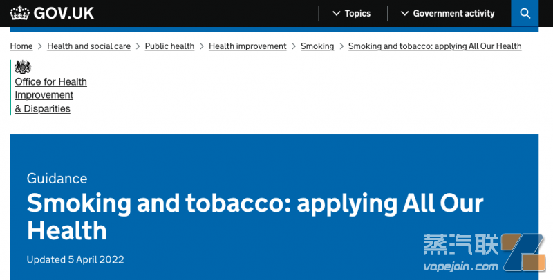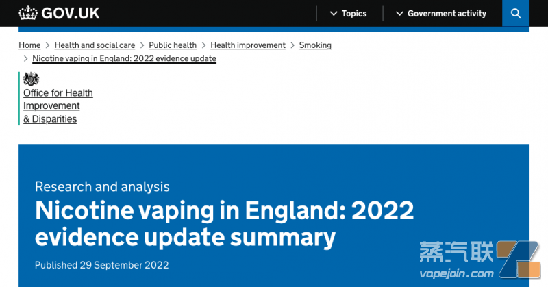 英国政府官网发布《英格兰的尼古丁电子烟:2022年证据更新》