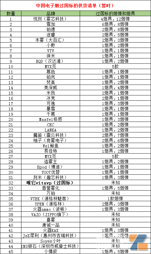 按照今天最新的统计,至今天,45家电子烟品牌已确定过审国标,估计一半没有拿证。柚子、魔笛、铂德、VAZO、MR迷睿、本雾过审款式也不少,KAX,小情叙也已经过审。而非我、福禄、福狗、龙舞和香克斯至今没有看到过审和拿证。