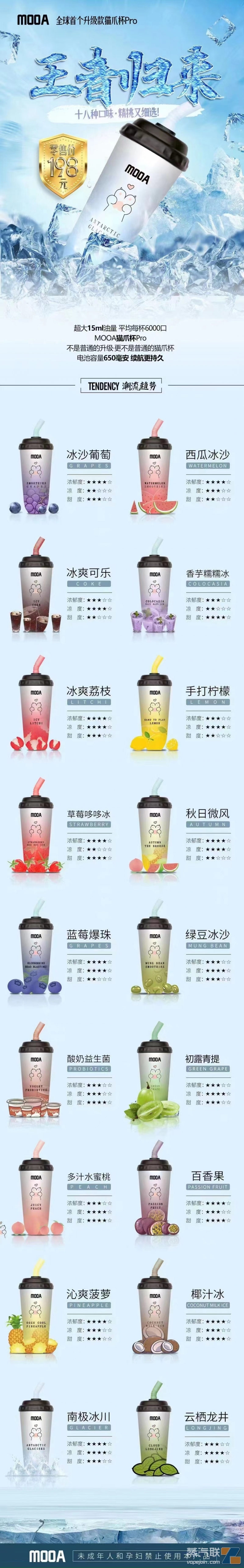 通过品牌口味表宣传图上看到,宣称的是首个升级款猫爪杯pro,具有王者归来之风;