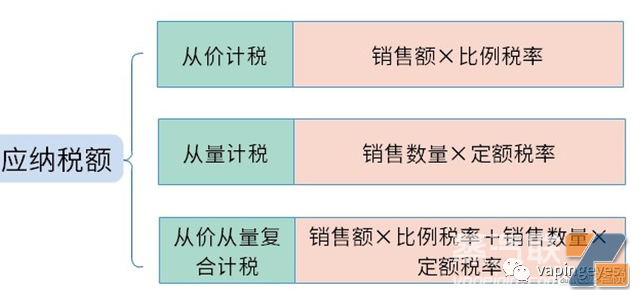 注意两点:一个是这里说的已经不是电子烟,而是整个消费税的概念,另外一个是整个内容是根据消费税法征求意见稿梳理的,跟现行可能有所不同。