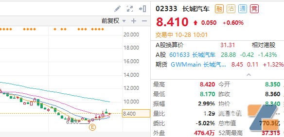 安信国际发布研究报告称,长城汽车三季度业绩超预期,但销量稍逊;相信随着更多新品上市后,长城将扭转销售颓势,新能源转型进入加速期;维持长城汽车“买入”评级,目标价17港元,较现价有103%上涨空间。