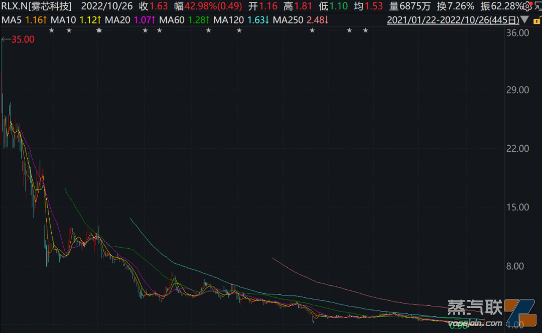 连续的监管组合拳,一度对行业形成重挫。截至10月24日,雾芯科技、思摩尔国际、中国波顿(3318.HK)股价自上市以来的最大回撤分别达到97.43%、91.48%、83.96%。其中雾芯科技股价一度跌破1美元/股,在退市边缘徘徊。