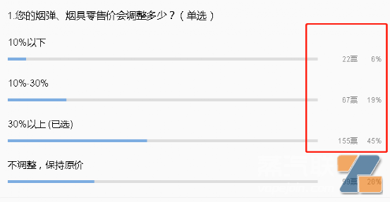按照雾化新势力最新一项300多位店主的调查,70%店主都偏向接下来会调价,其中45%店主涨价幅度将超过30%以上。意味原先99元1盒3颗装烟弹,可能未来会卖130元以上的零售价格。