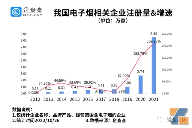 企查查数据显示,我国现存电子烟相关企业超16万家。近10年来,我国电子烟相关企业注册量不断增加。2019年新增电子烟相关企业1.06万家,同比增长62.90%。2020年新增2.74万家,同比增长158.76%。2021年新增8.49万家,同比增长209.85%。2022年上半年,我国新增电子烟相关企业1.76万家,同比减少65.895。