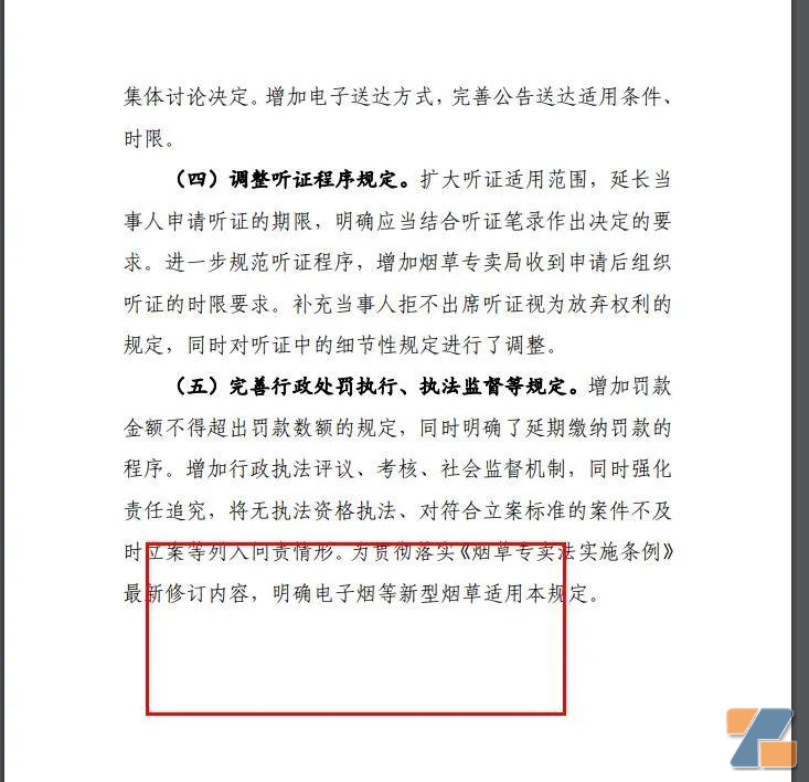而且还特别提到“最新修订内容,明确电子烟等新型烟草适用本规定。”