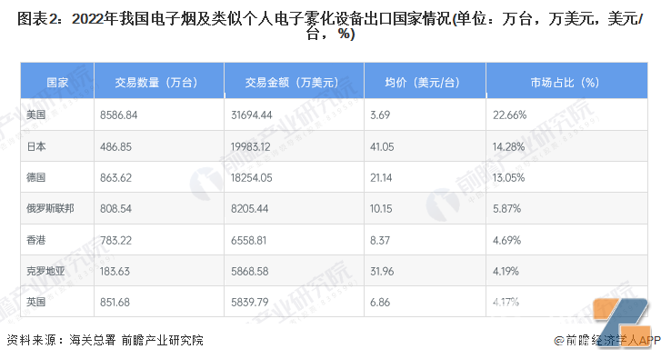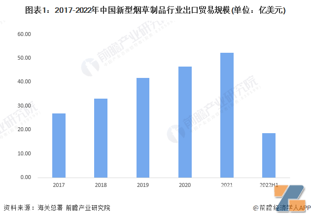 注:2022年以前电子烟等新型烟草制品海关编码未单独列明,采用编码85439090(品目8543所列其他设备及装置的零件)代表电子烟设备,与2022年口径不同。