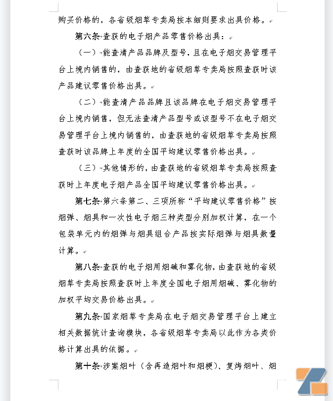 按照细则指出,电子烟涉案案件查处中,无法查清实际销售或者购买价格的,各省级烟草专卖局按本细则要求出具价格。