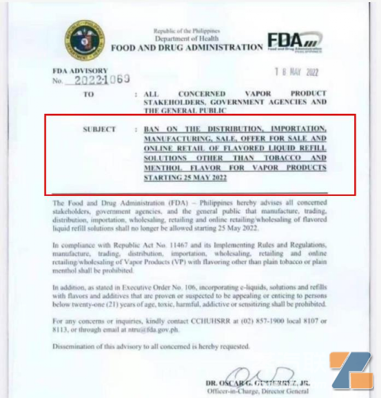 今年5月下旬,按照新发布的菲律宾第11467号共和国法案及其实施细则和条例指出,从2022年5月25日(即今天)起禁止销售和在线零售除烟草和薄荷醇口味的电子烟产品。此法出台,标志着菲律宾的电子烟进入“办证合法”时期。菲律宾将是东南亚继印尼又一个对电子烟立法的国家。也意味着之前谈到的菲律宾新法案可能放开口味限制,如今看来,并没有放开“调味”电子烟。