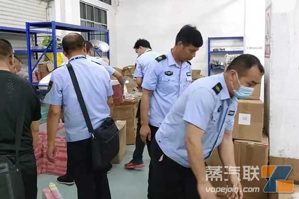 经过前期大量取证工作,6月6日晚,公安、烟草、市场监管等部门联合出动40余人,对位于天门市小板镇的制假工厂和仓库实施检查,现场查获伪劣成品电子烟2万余支,烟油400余公斤,烟管、电池、吸油棉、包装盒、虚假防伪码等配件60余万件,涉案电脑3台。