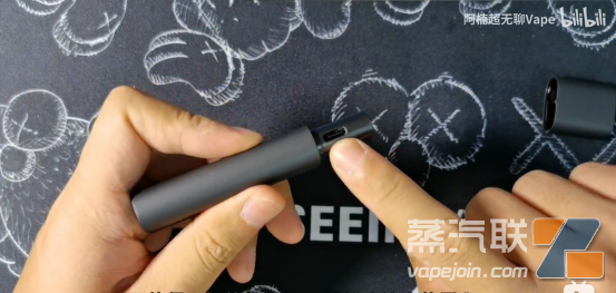 机器整体是一个简约风的设计,没有过多的元素在里面只有一个很清爽的品牌logo,加上一个加热按钮。拔开盖帽,里面就是我们很熟悉的加热铁片,值得一提的是他们的type-c设计隐藏在里面,为了整体机器的一个协调性。
