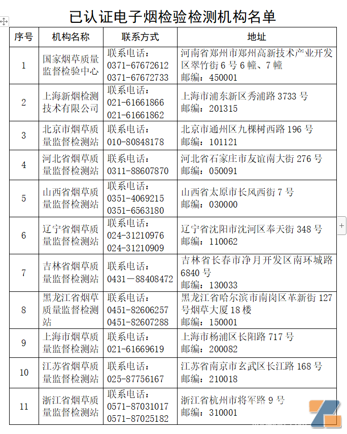 HNB资讯网报道,12月15日消息,今日,国家烟草局公布更新后的认证电子烟检验检测机构名单,共27家,以下为全文: