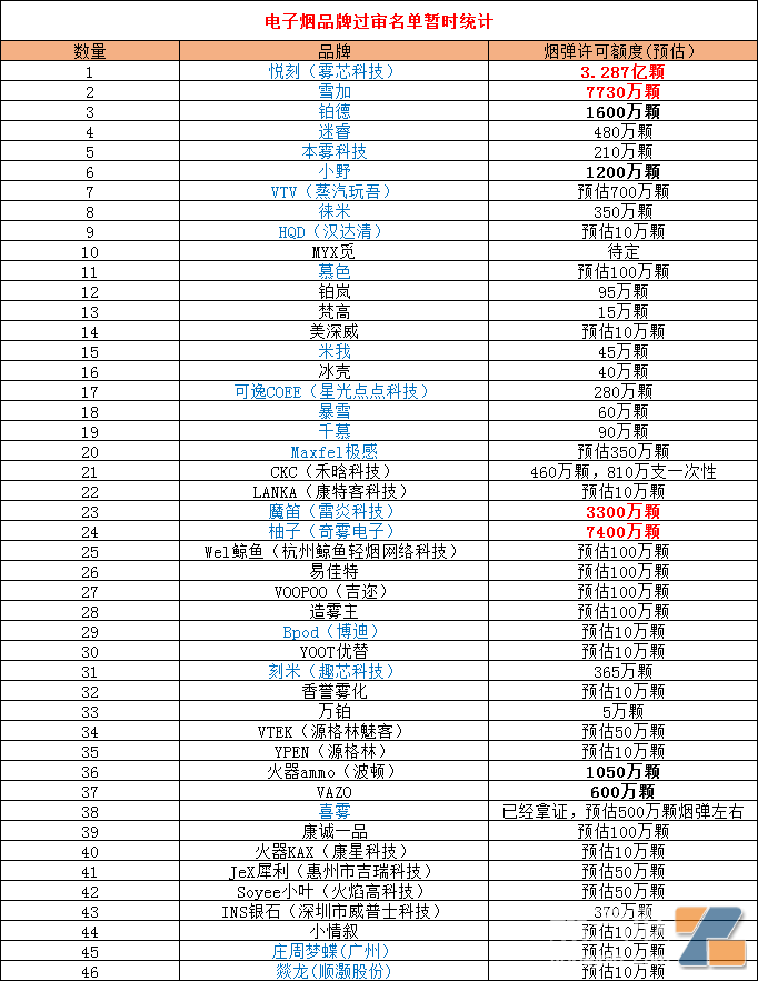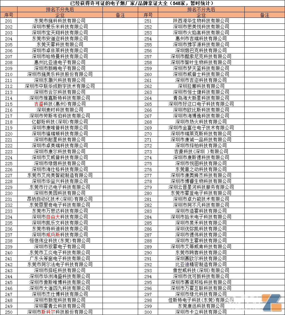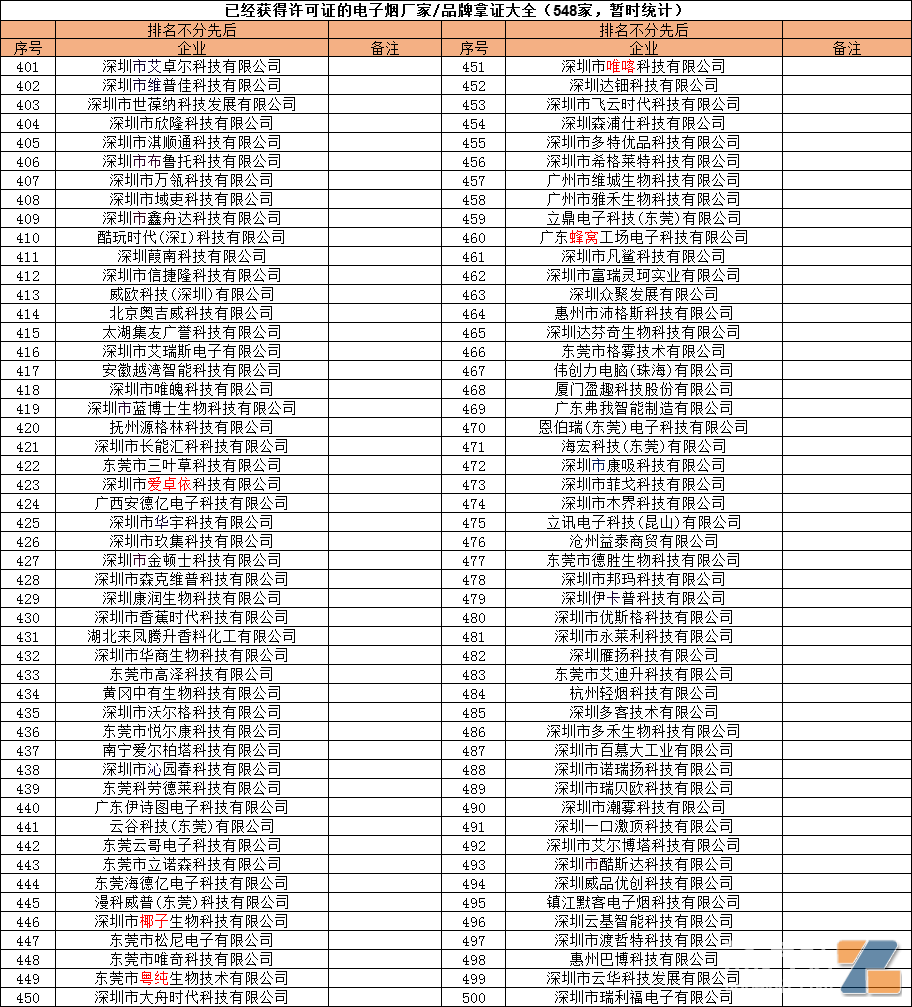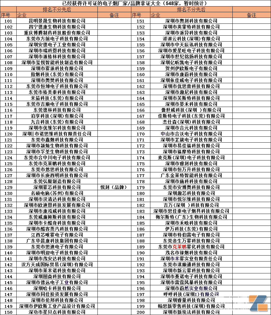 下面是604家拿证(先前548+56)的电子烟厂家/品牌全名单(暂时统计):