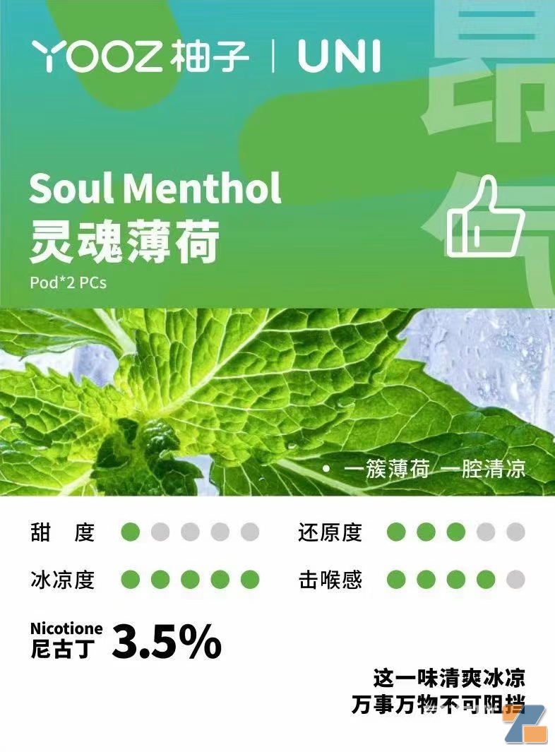 这个口味一直是yooz最经典,这次五代灵魂薄荷延续了二代的清凉口感,甜度偏低,主要是凉,口感就像加了冰的薄荷