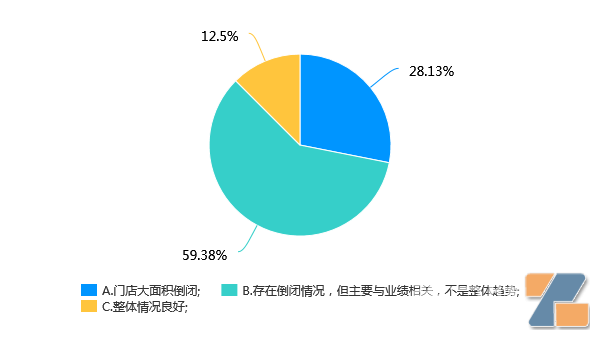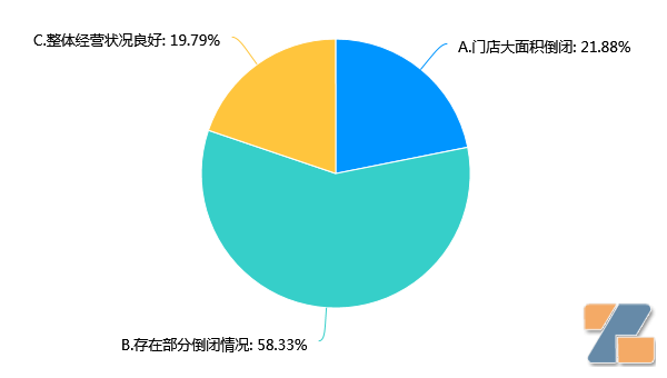绝大部分品牌尚处于正常运营状况,所以58%的店主,给出了“存在部分倒闭”这一符合逻辑的答案。