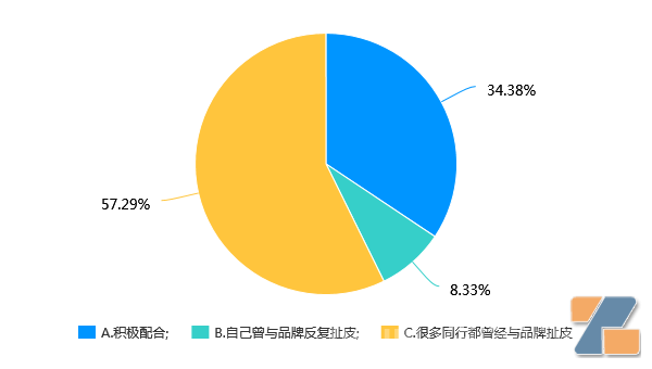 申请闭店有没有得到品牌的积极配合,在这个问题上,超过65%的店主,给出了让人心酸的答案,8%的店主曾经与品牌反复扯皮,超过57%的店主则看到了同行的大面积扯皮。