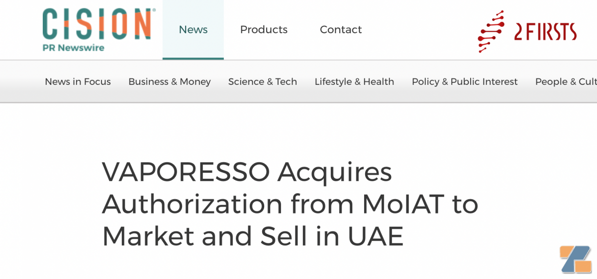 思摩尔国际旗下品牌VAPORESSO宣布已获得阿拉伯联合酋长国(UAE)工业和先进技术部(MoIAT)注册为授权电子烟品牌,成为第一个获得此类批准的开放系统电子烟设备品牌,使该公司有权在阿联酋销售其电子烟。