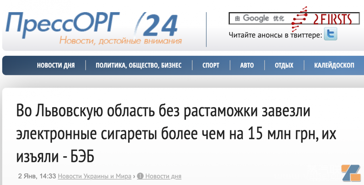 乌克兰经济安全局(BES)的侦探们在利沃夫地区的搜查中查获了没有消费税的某知名品牌的电子烟。据估计,这些货物的价值超过1500万格里夫纳(约合人民币300万元)。