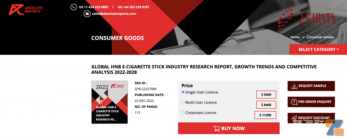 1月8日,权威研究报告机构Absolute Reports发布了全球HNB市场预测报告,这份最新报告研究了行业结构、销售额、收入、价格和毛利率。介绍了主要生产商的生产地点、市场份额、行业排名和概况。进行初级和次级研究是为了获取最新的政府法规、市场信息和行业数据。数据收集自加热不燃烧电子烟棒制造商、经销商、最终用户、行业协会、政府行业局、行业出版物、行业专家、第三方数据库以及Absolute Reports的内部数据库。