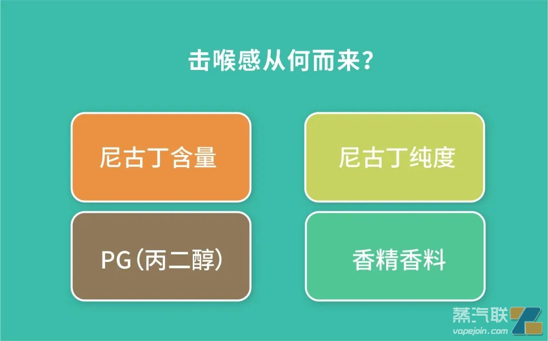 除此之外,雾化液中的另一种主要成分PG(丙二醇),也会对喉咙产生明显的刺激性。因此,PG含量高的雾化液带来的击喉感会更强。