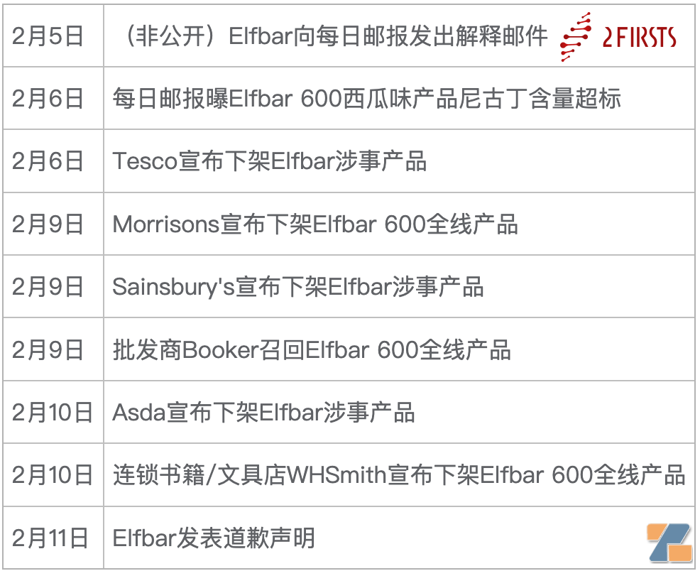近日,Elfbar 600西瓜口味电子烟产品被曝烟油尼古丁含量超标,两个至上梳理了事件脉络和目前作出下架处理的连锁超市品牌及其市场占有率。