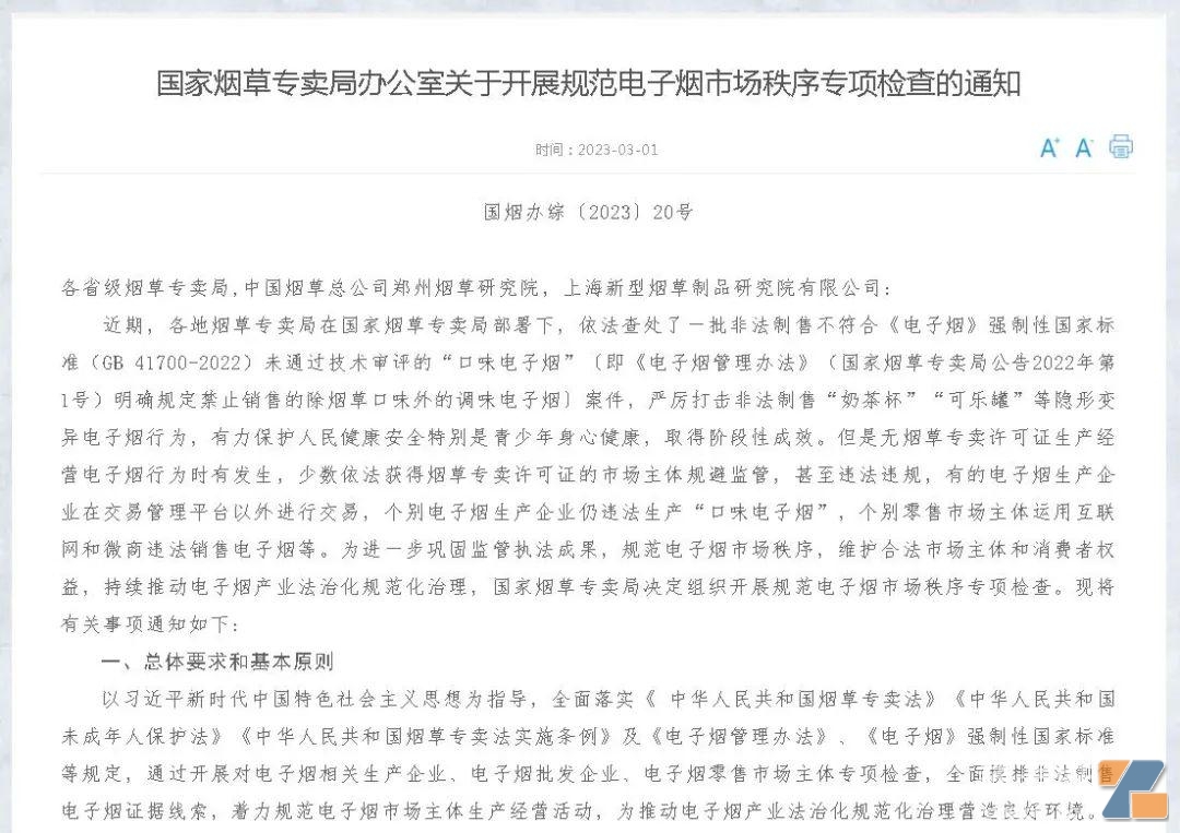 这份文件,可以说是中国电子烟国内市场整治的开始,也是市场秩序行动进一步规范。这次检查的决心空前,预计也是3.15消费者权益日之前一次“大行动”。