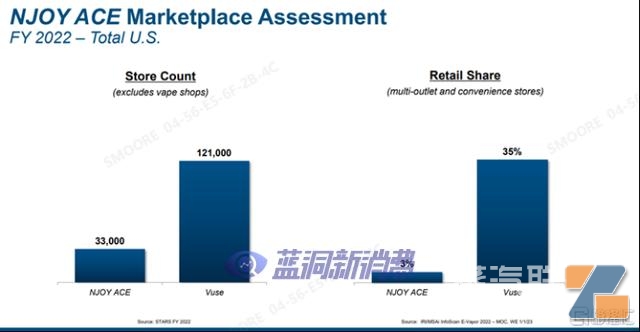 根据目前披露的数据,NJOY ACE覆盖了3.3万家线下商店,在终端渠道的占有率达到3%。奥驰亚收购NJOY后,将向NJOY开放其原有的20万家传统烟草销售渠道帮助NJOY迅速扩大市场影响力。这将是最重要的一步,要知道目前已经占据美国市场第一的VUSE的线下渠道数量约为12万家,如果NJOY ACE能够顺利在奥驰亚的渠道铺开,未来NJOY很大可能取代JUUL成为美国电子烟市场第二大品牌。