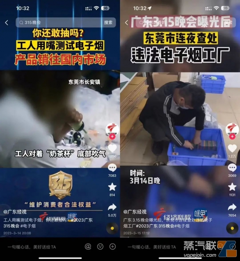 报道中相关从业者提到,电子烟厂一般集中在东莞深圳,目前来讲拿到生产资质的厂非常少,大部分属于小作坊状态,目前小厂生产的主要流通的方向都是国内。在315晚会曝光后,东莞市于3月14日晚连夜查处违法电子烟工厂。