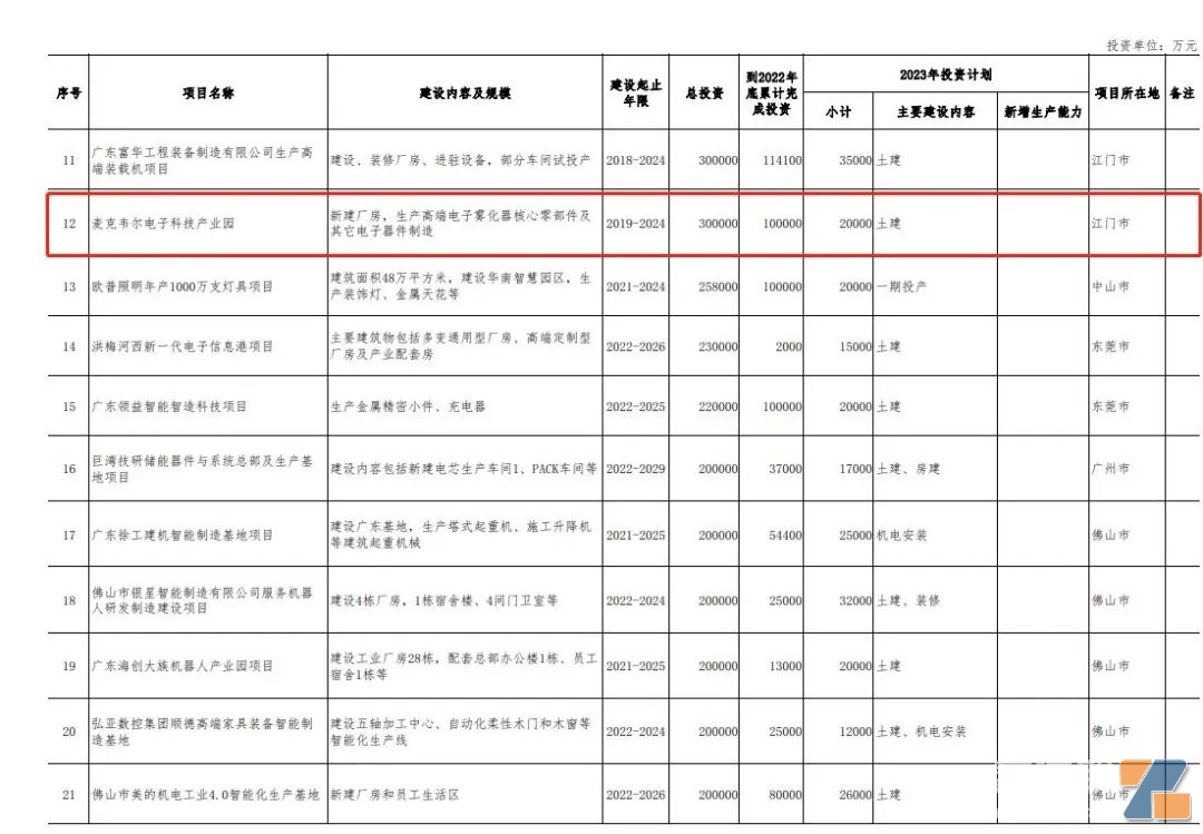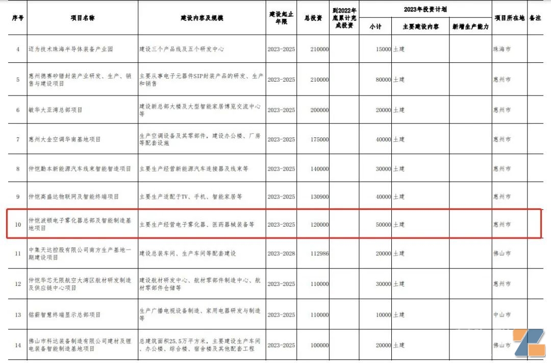 在1090个重点建设项目中,包含4家电子烟相关企业厂包括麦克韦尔、思摩尔、波顿、汉清达,涉及江门、惠州、佛山3地的4个项目,总涉及投资金额达58.5亿元。