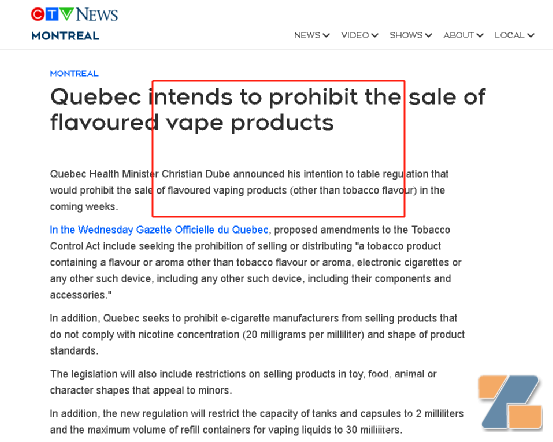 同时公报还建议预装设备的体积限制为2mL,再填充容器的体积限制为30mL。此外,法规草案将尼古丁浓度限制在20毫克/毫升,并禁止使用可能对未成年人有吸引力的任何形式、外观或功能,这两者都已受到联邦政府的监管。而在拟议的法规中,魁北克政府认识到专业电子烟商店将倒闭和裁员,而销售烟草公司自有品牌的便利店对销售的影响较小。加拿大已经通过新斯科舍省看到,在风味禁令发布后的 90 天内,特色产业遭到重创。魁北克将经历数以千计的企业倒闭、失业、租赁协议破裂以及与第三方供应商的合同终止。不过加拿大电子烟协会 (CVA) 对拟议的法规感到不满,该协会和行业倡导者明确概述了此类政策对魁北克政府的负面影响。