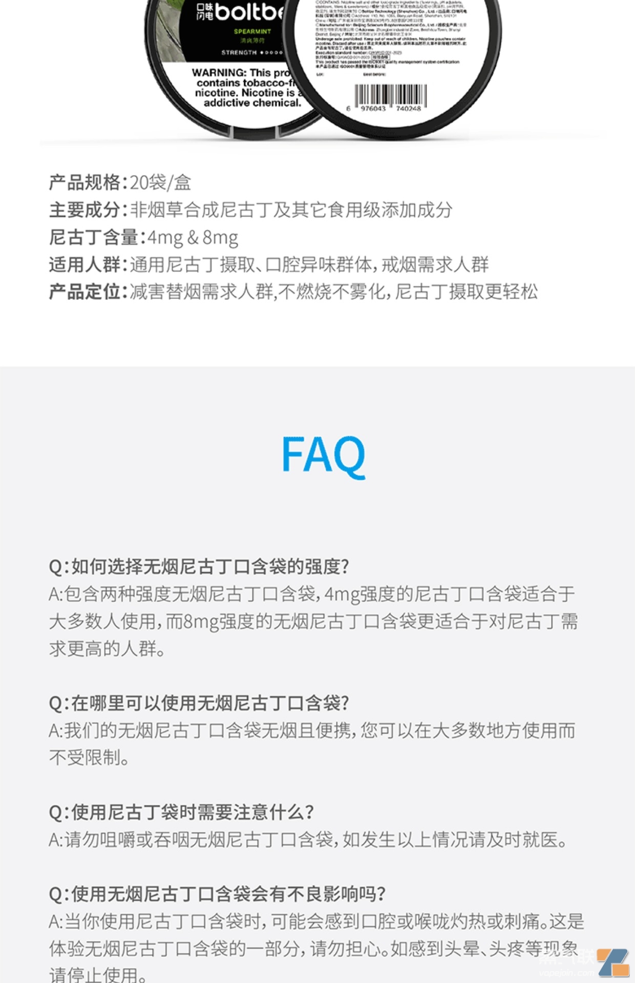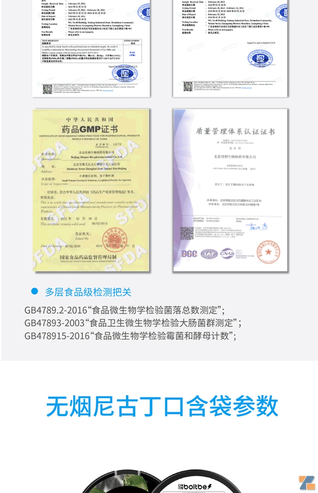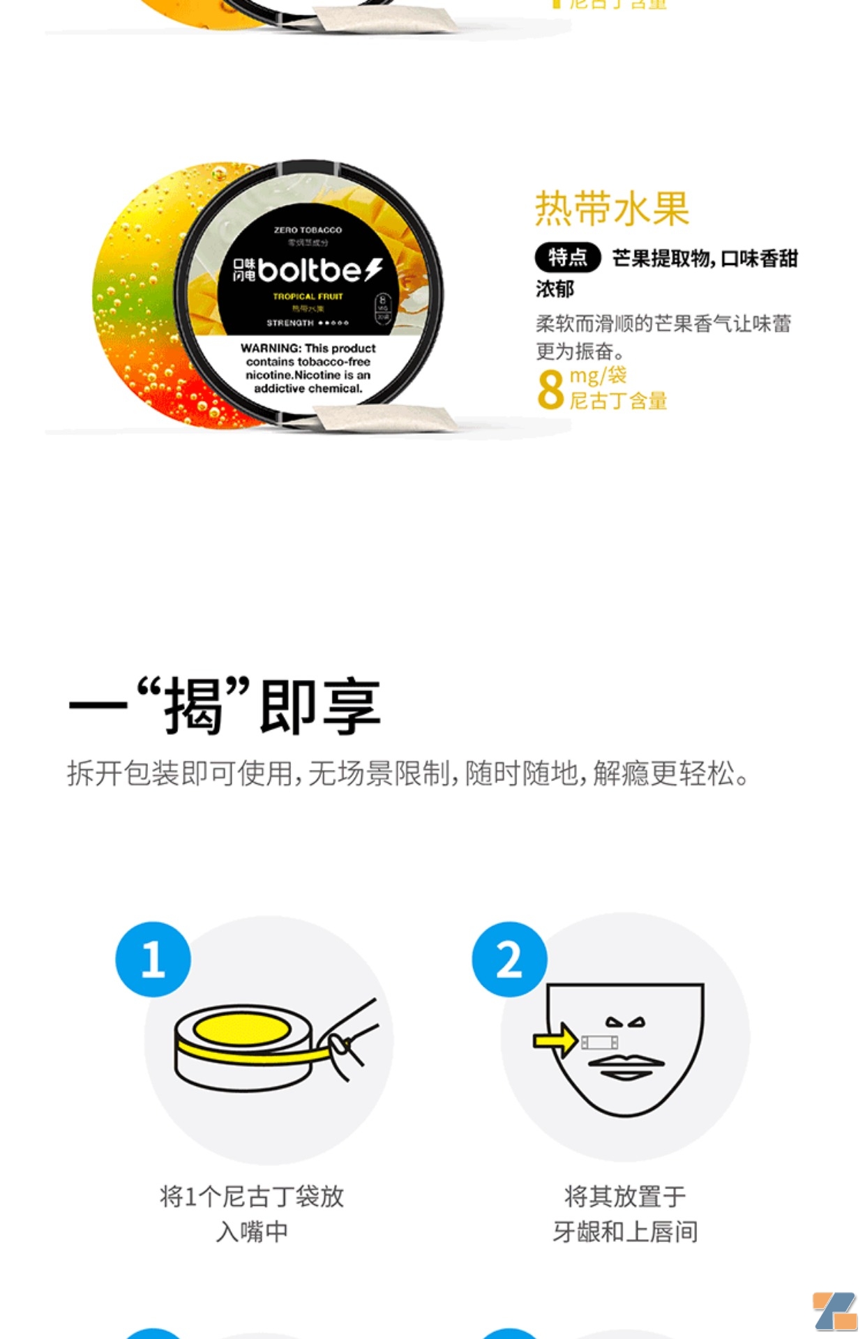 瑞典Snus口味闪电Boltbe无烟尼古丁袋口含袋替烟唇含无烟草提神无二手烟