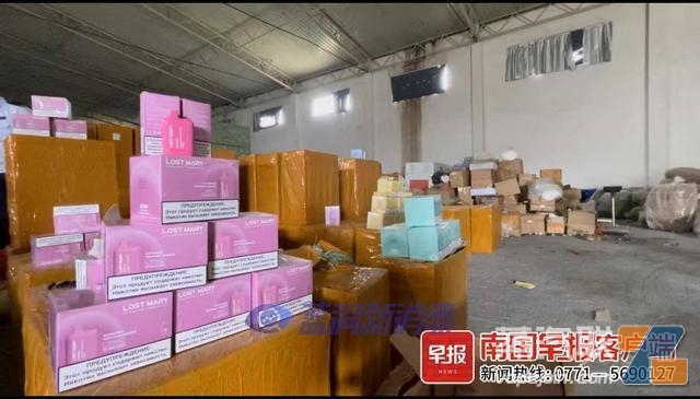 被查获的电子烟堆放在仓库。