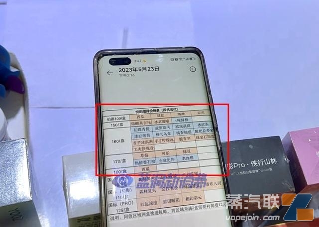 营业员提供的非烟草味电子烟弹品类和价格表