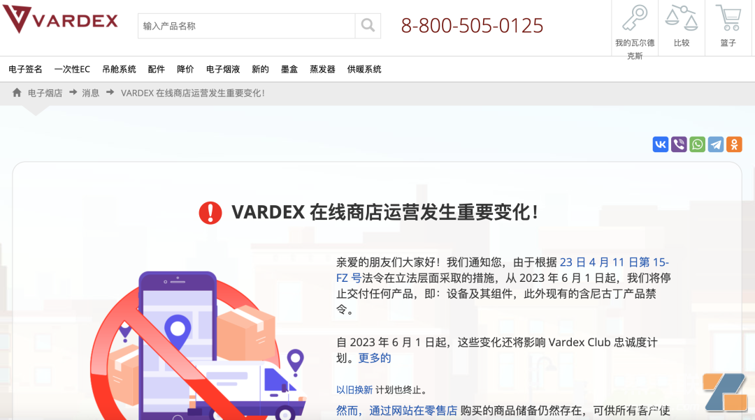 这一变化造成的直接影响是,俄罗斯知名电子烟电商基本上都已经先后关停,或是完全停止线上销售服务。比如俄罗斯最大的电子烟电商VARDEX官网已经从6月1日起销售任何产品。