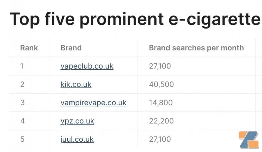电子烟商店是英国重要的渠道形式之一,令人关注的是,这些商店在网上都有商店。其中一家当地商店以每月超过6万次搜索量排名第一。