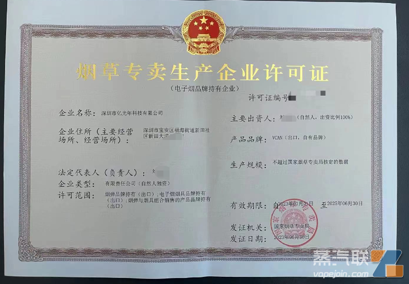 根据亿光年品牌商的介绍,这一次换证难度一般,一般在消防验收方面会有难点。他提到“去年消防会比较松,但今年会比较严”。而亿光年是深圳老牌出口电子烟品牌企业,成立于2016年,其产品品牌即为VCAN,为出口自有品牌,也是去年最早一批拿证品牌企业。今年其也成功换证,许可范围包括烟弹、烟具、两者组合的出口品牌持有。