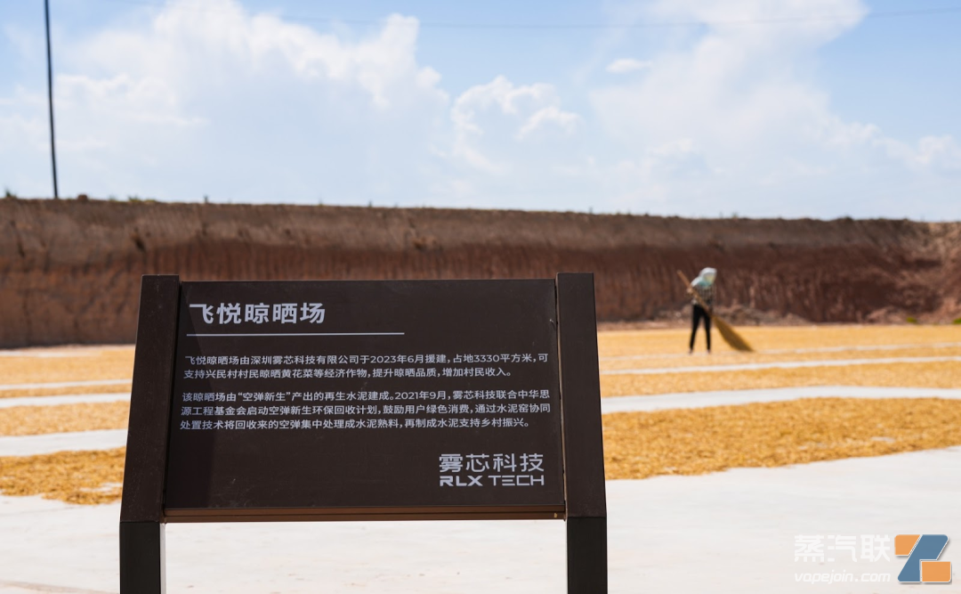 据了解,建设飞悦牛棚和飞悦晾晒场所使用的水泥,由悦刻“空弹新生”环保回收项目产出。2021年,悦刻投入2000万元启动该计划,不仅鼓励用户绿色消费,也通过水泥窑协同处置技术将回收而来的空弹集中处理成水泥熟料,制成水泥支持乡村振兴。