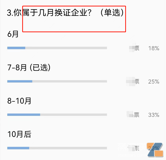 笔者特别调研了市场,发现市场上80%工厂都将集中在8-10月换证。在当时调研中,提问到“你属于几月换证企业?”,70%以上都表示换证将是7-10月份这个周期。其中还有20%是10月后,而8-10月将特别集中,比重超过30%。