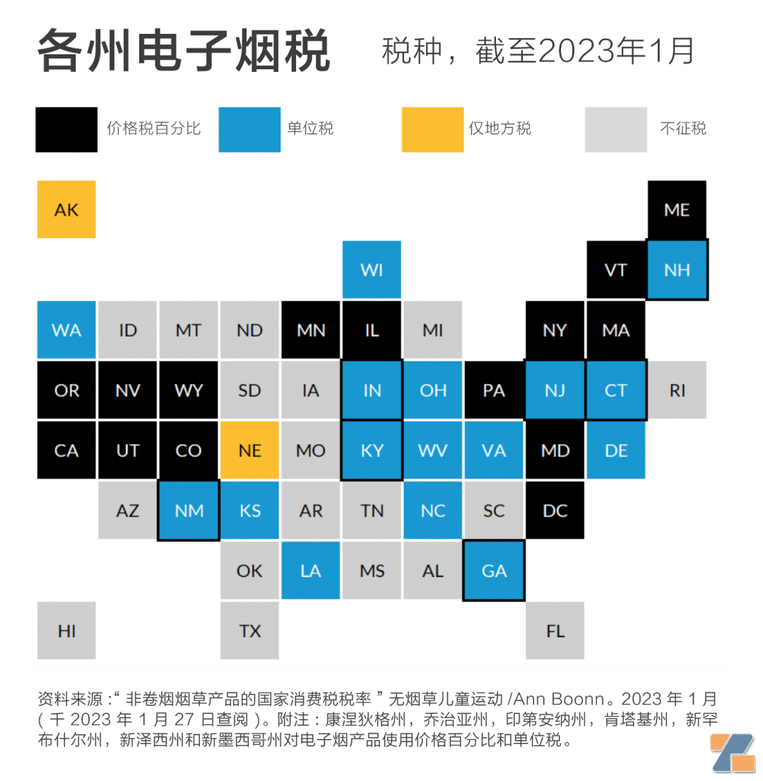 ● 各州的电子烟税率差异有多大?