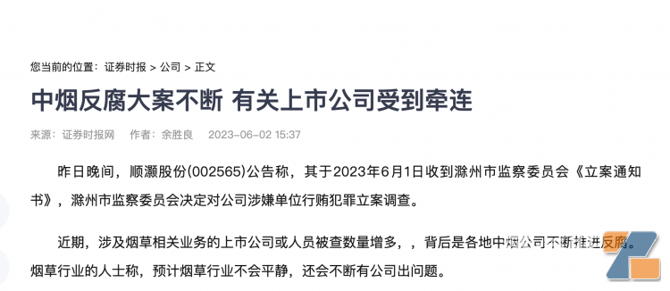 【6】中烟反腐大案不断 有关上市公司受到牵连