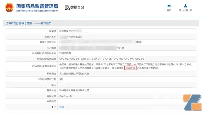记者根据一则图示的备案号在国家药品监督管理局网站查询发现,该产品是一款口腔给药器,面向需依靠给药器进行用药的人群,而且明确表示“不含药物”。