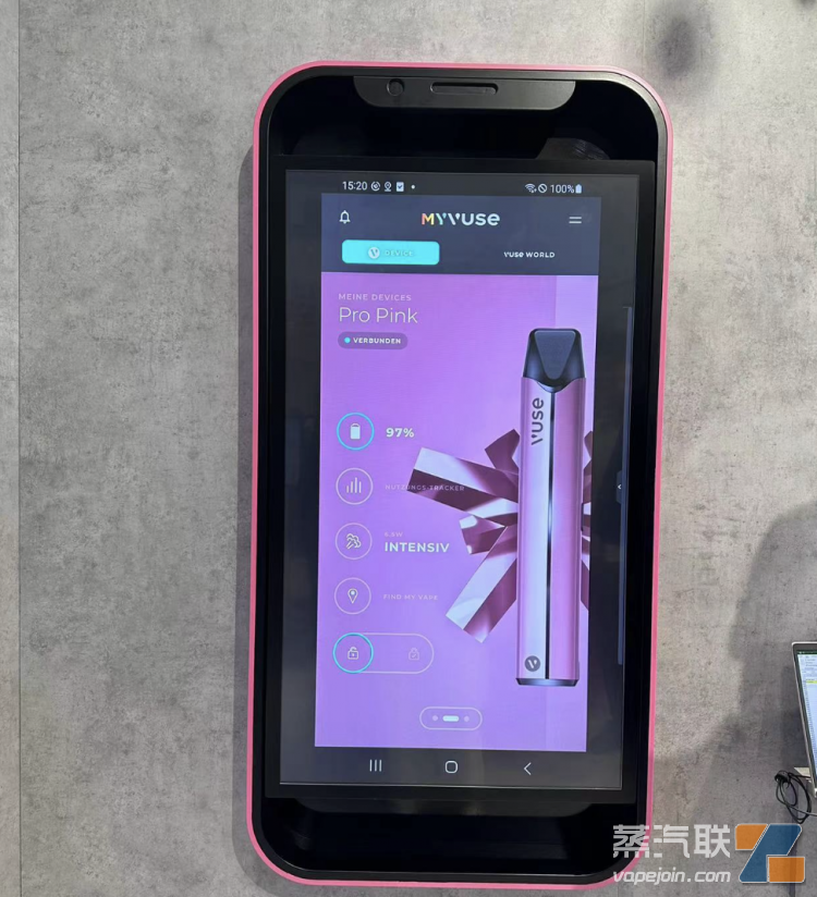 本次展会上,两个至上在BAT的展台上对其换弹设备VUSE PRO进行了测试,发现该产品具备通过APP控制功率的功能,同时还能实时监测使用口数。据了解,VUSE PRO是美国电子烟“白关”市场份额排名第一的品牌。