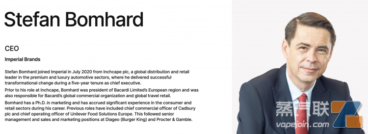 帝国烟草的CEO的Stefan Bomhard|图源:GTNF