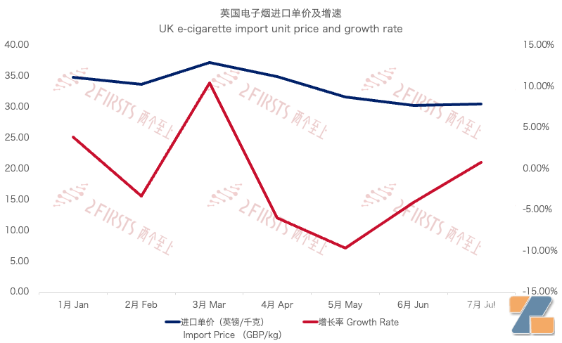 英国电子烟进口单价及增速|制图:两个至上(蒋明希)