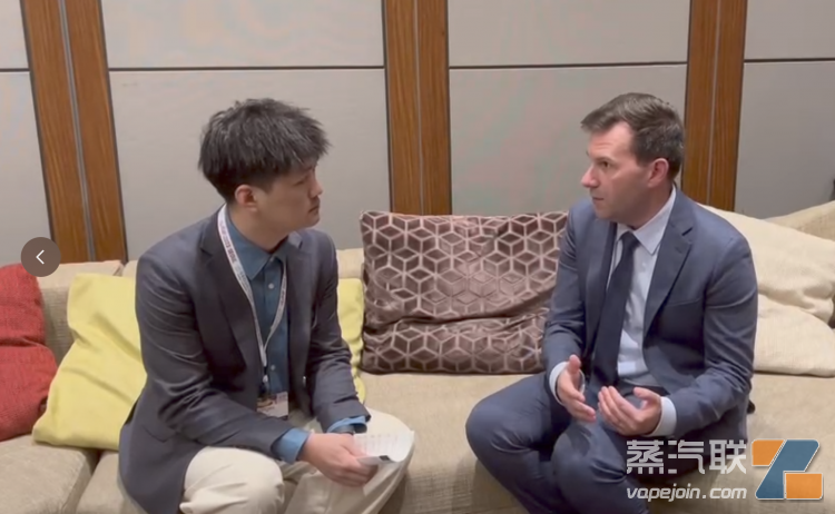 FDA烟草中心主任布莱恩·金(Brian King)与两个至上国际站主编朱泓旭交谈|图源:两个至上