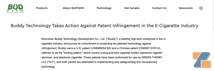 深圳市博迪科技开发有限公司在其官网发布声明,就其名为“一种拔插锁紧式烟嘴、电子烟雾化器及电子烟”的美国和中国专利侵权问题提出维权声明。